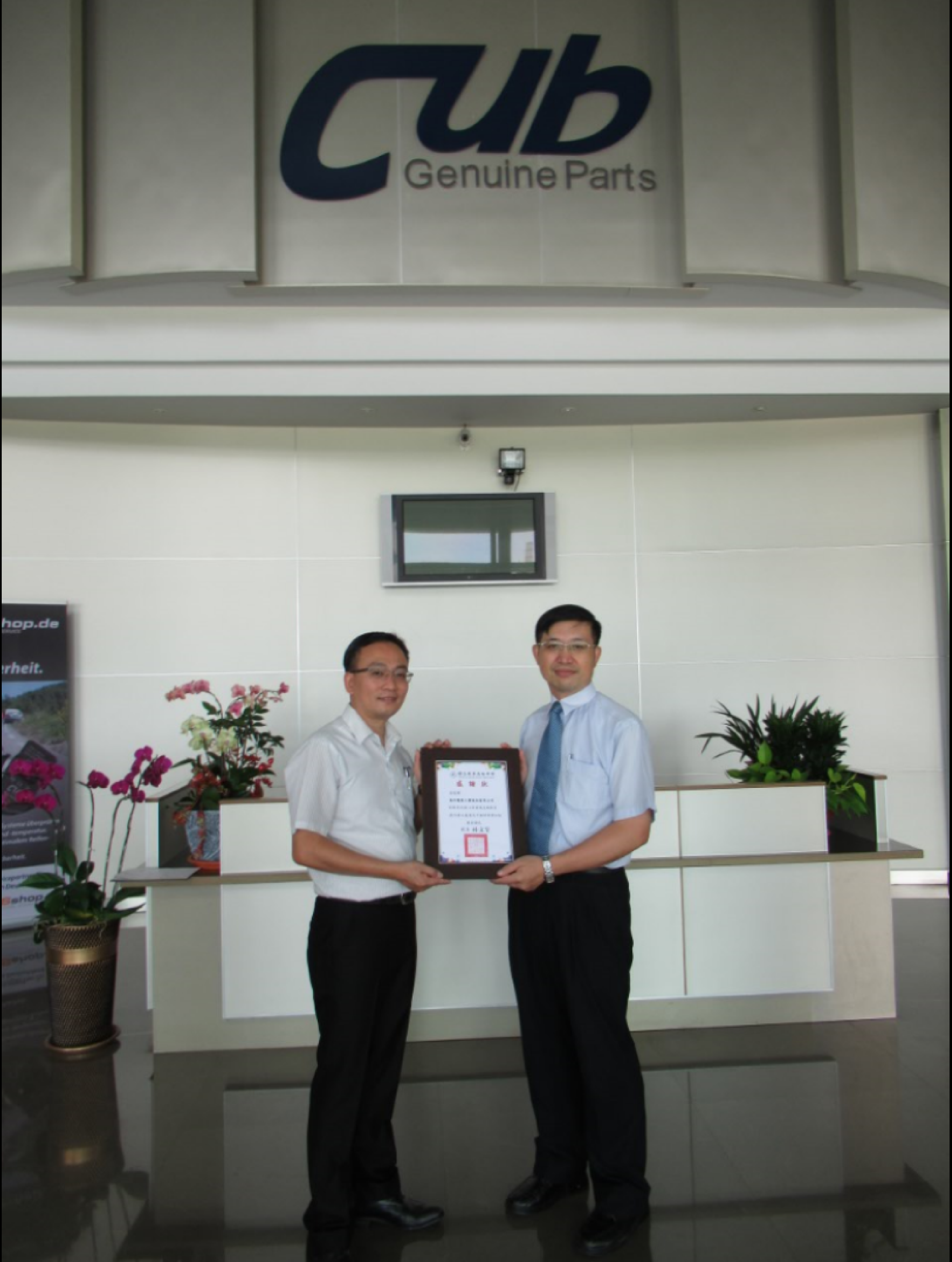 林校長致贈感謝狀予為升電裝陳副總,感謝貴公司對教育的熱心與重視技職教育,提升本校汽車科教師專業知能 |