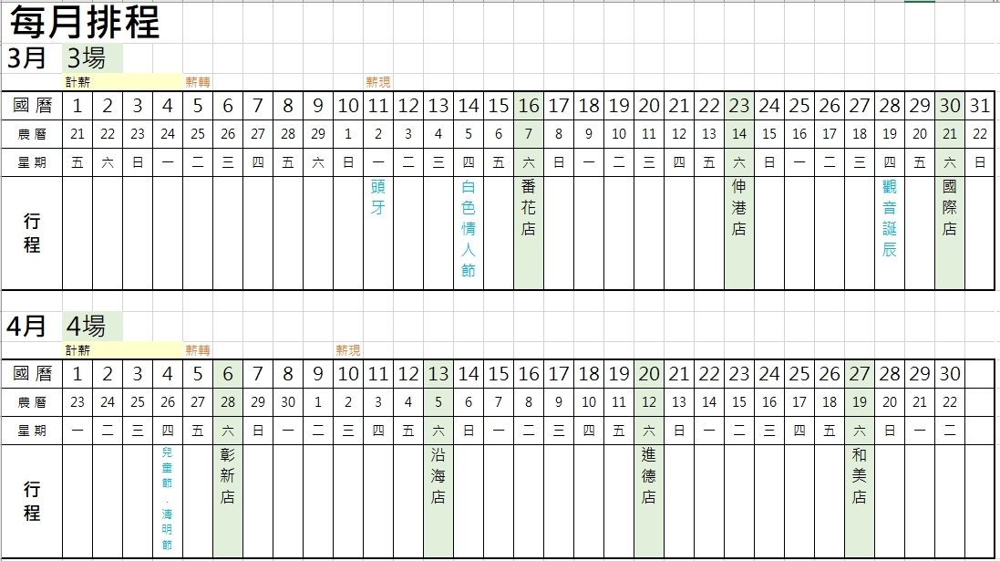 2.4、5月的行程都只有星期六,所以應該不會影響大家太多的時間!