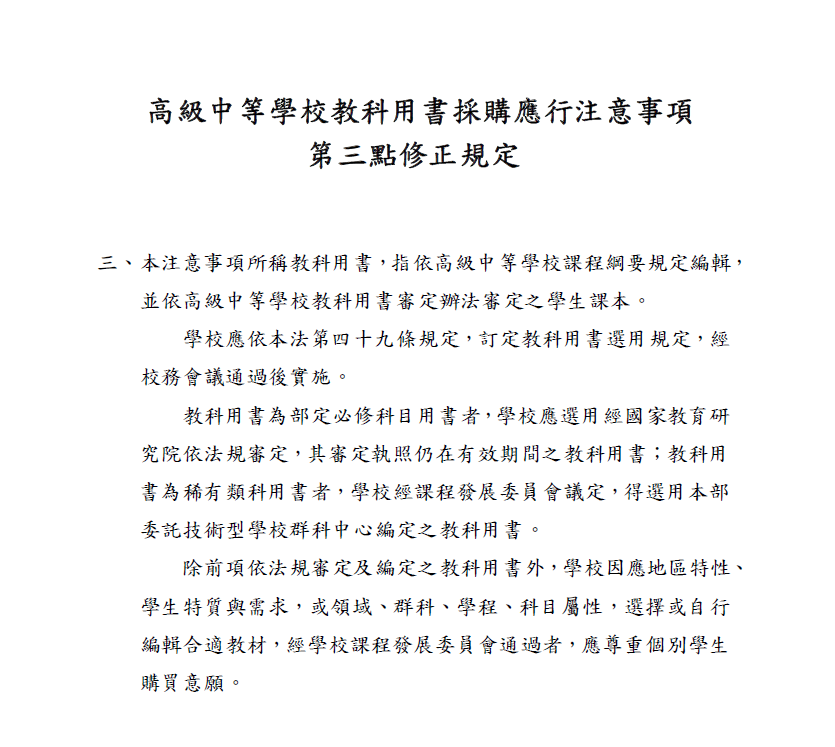 高級中等學校教科用書採購應行注意事項修正