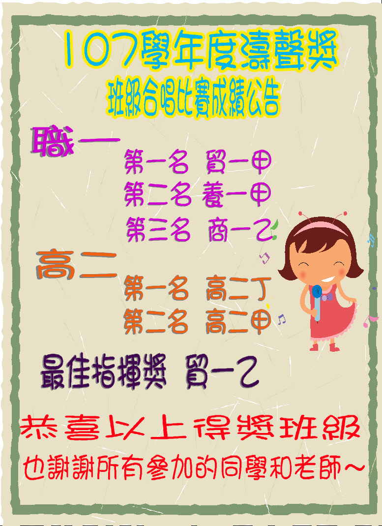 107學年度濤聲獎班級合唱比賽得獎班級