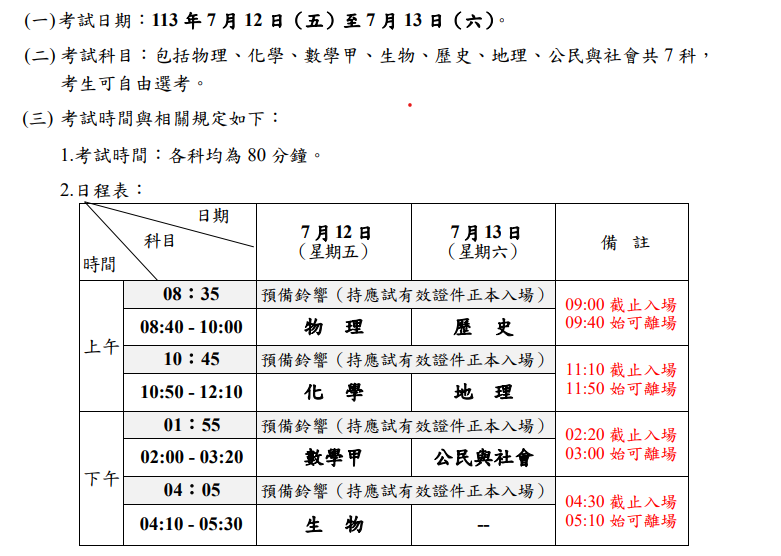 - 113學年度分科測驗之考生應考資訊可由考生至大考中心網站專區線上查覽或列印。