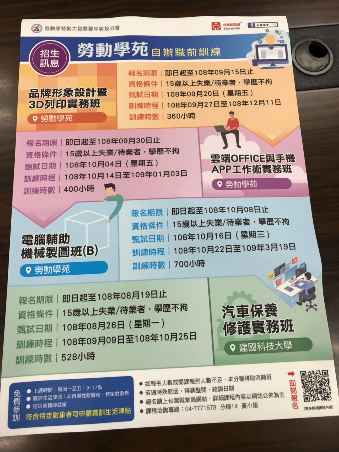 轉知勞動學苑自辦職前訓練