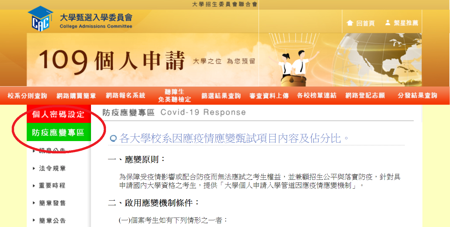 【109大學個人申請】大學甄選委員會「防疫應變專區」