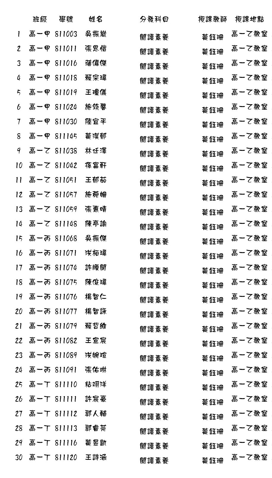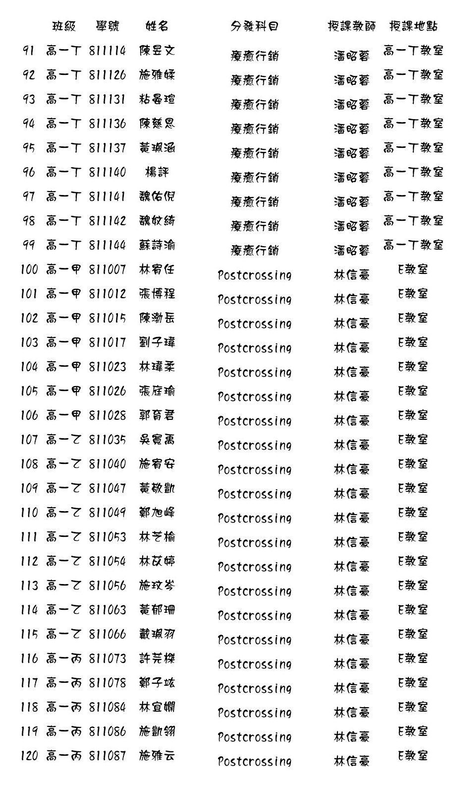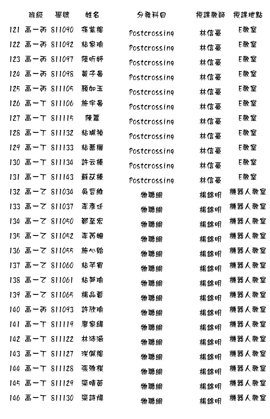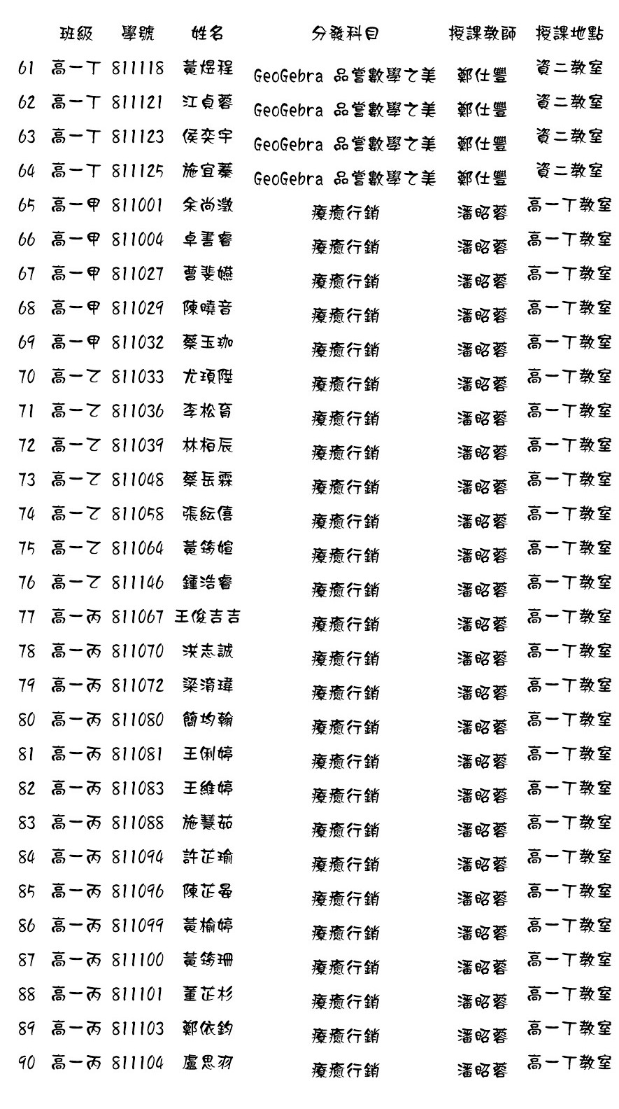 108.02高一微課程第11週至19週選課結果分發名單