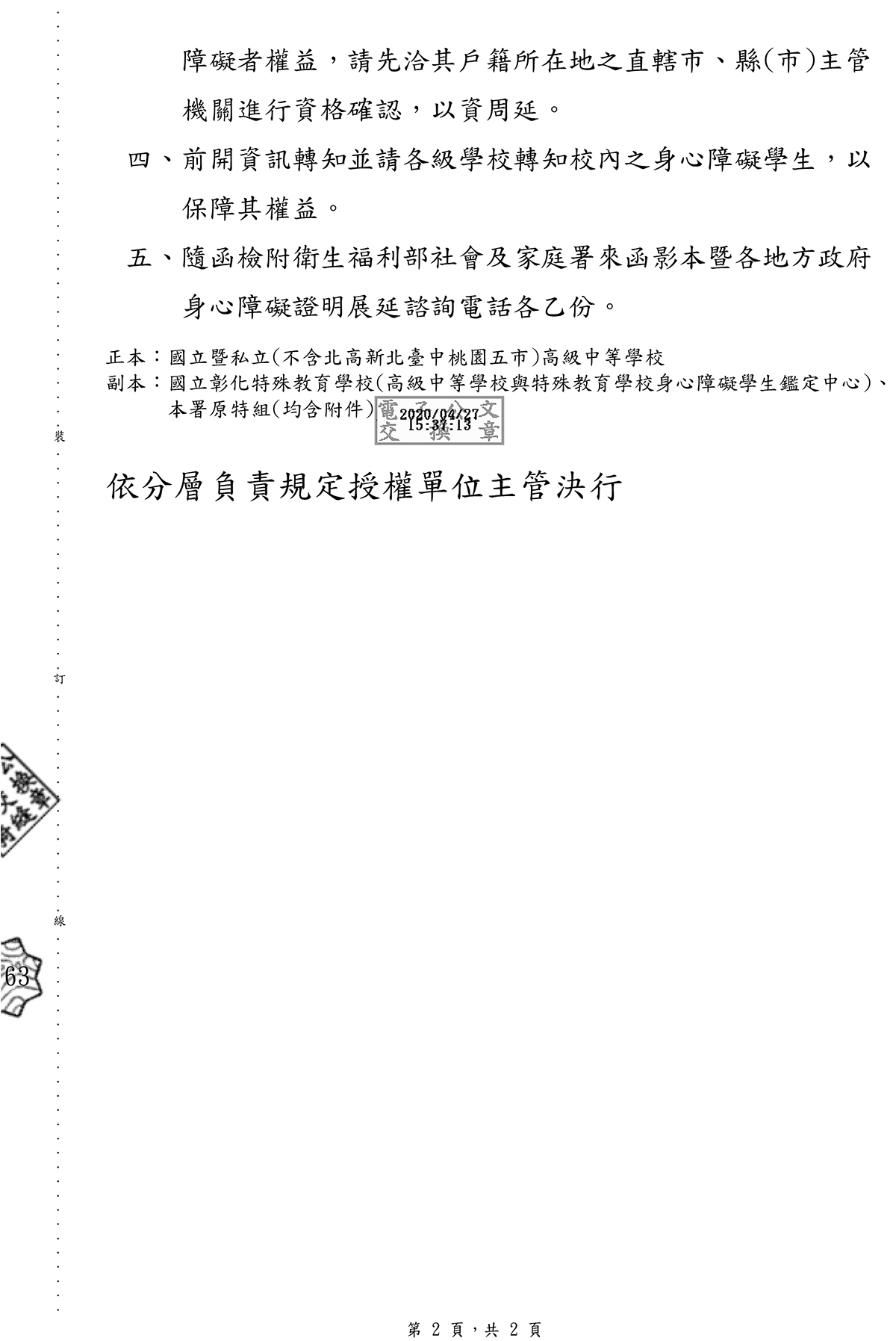 詳如來函,供有衛服部身心障礙重新鑑定需求之師生知悉。