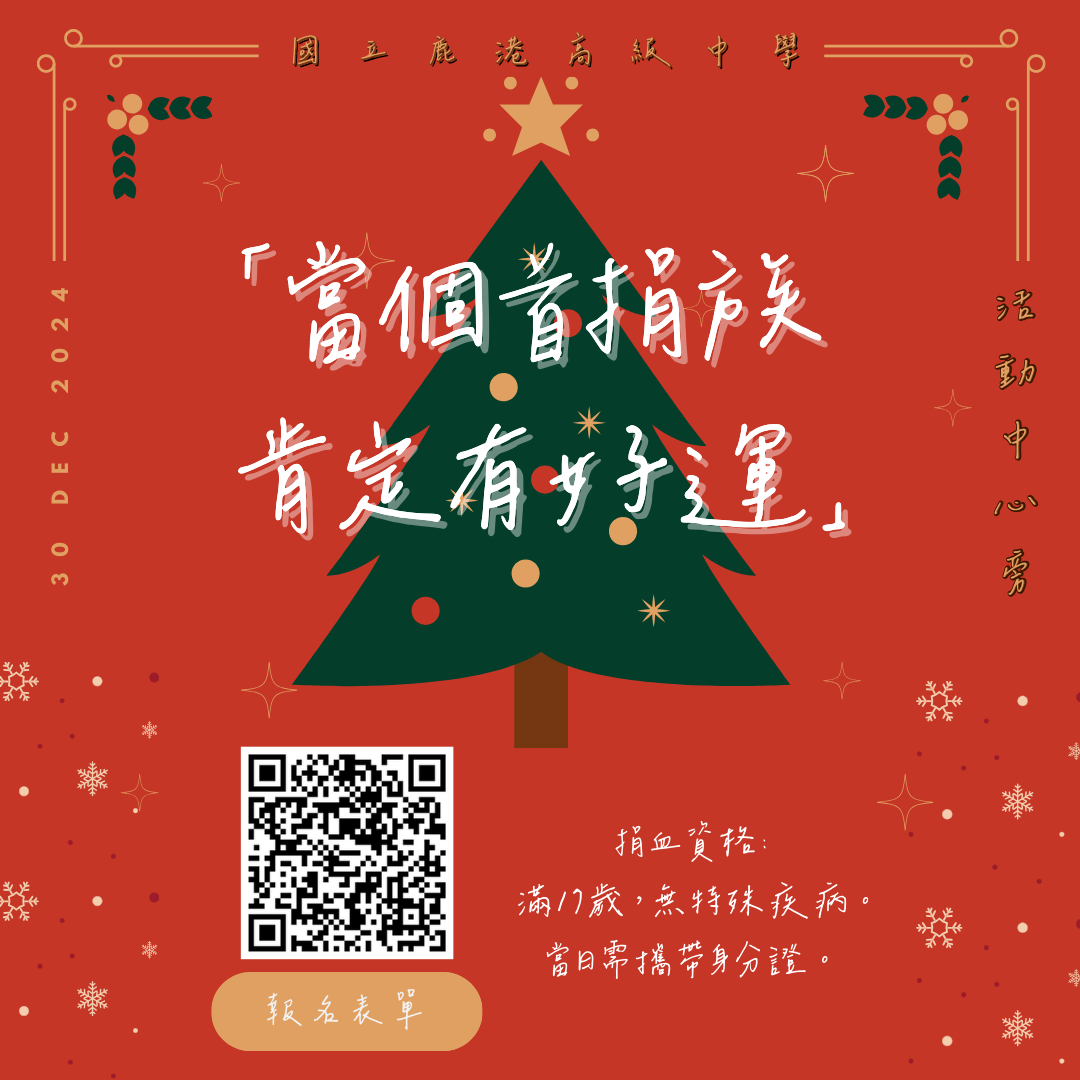 【捐血活動】2024年12月30日「當個首捐族 肯定有好運 」