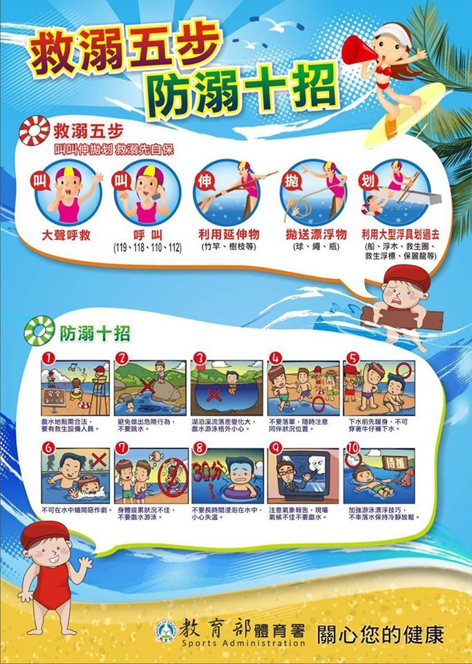 二、因應端午連假及梅雨季期間,可能出現局部性大雨或豪雨,故為強化學生水域安全知能,教育部體育署業已製作「水域安全數位教學影片」等宣導短片,以提升同學自我水域安全知能與防(離)災意識,預防溺水事故發生,請各位同學務必上網觀看。