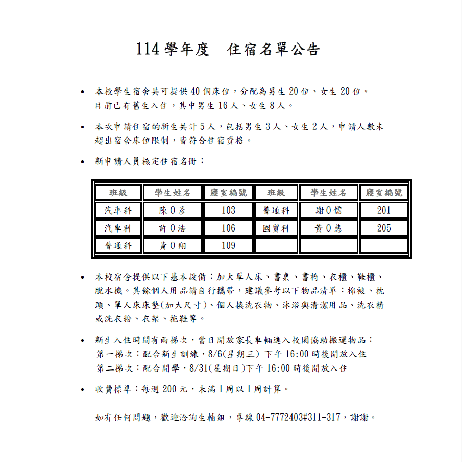 114學年度住宿名單