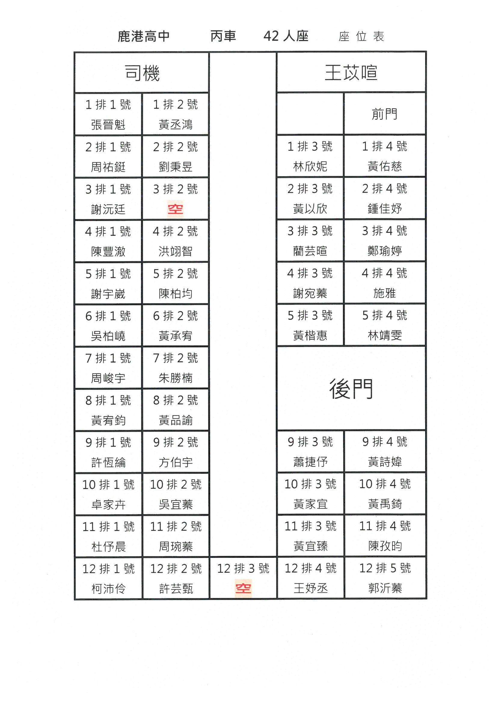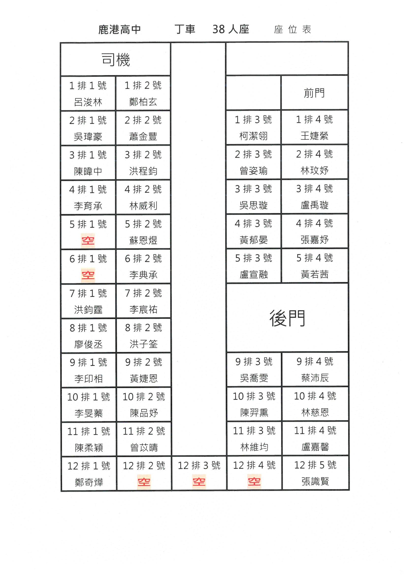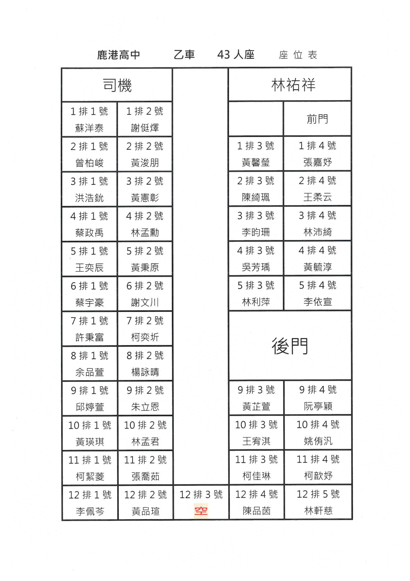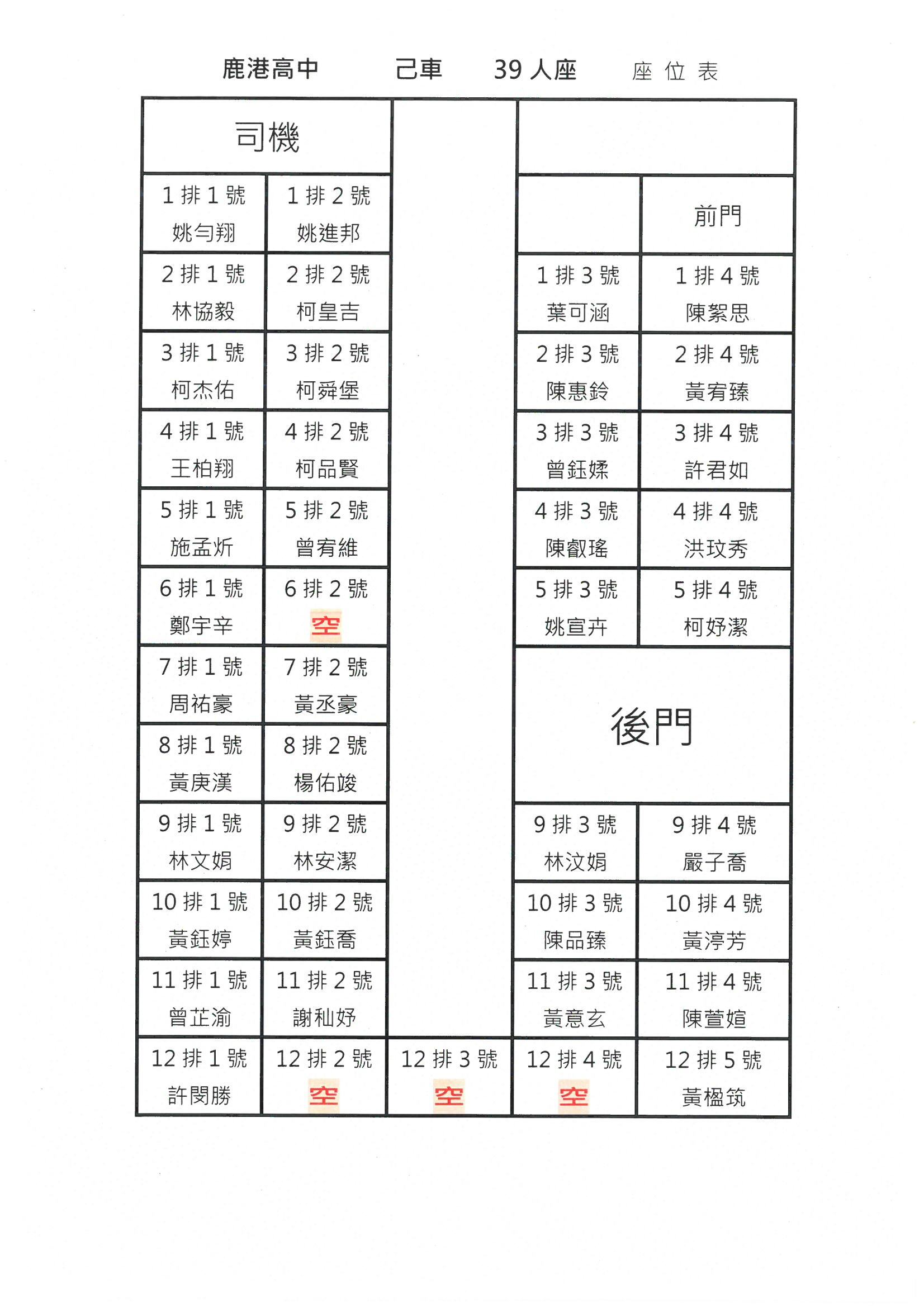 3、學生專車為每人一個座位乘坐,請同學務必依照座位乘坐,顯示「空」請勿乘坐