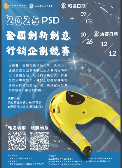 臺北商業大學辦理「2025 PSD全國創新創意行銷企劃競賽」,邀請高中職學生報名參加, 詳如說明。
