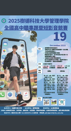 樹德科技大學辦理「2025樹德科技大學管理學院高中職專題暨短影音競賽」,鼓勵踴躍報名參加