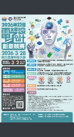 高雄科技大學辦理「2026年第二十二屆全國電子設計創意競賽」,鼓勵學生報名參加