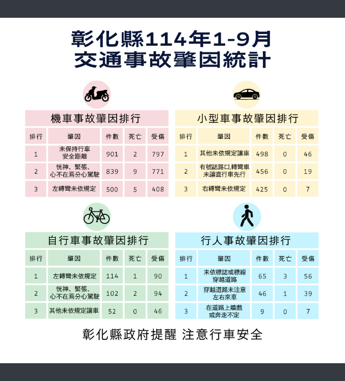彰化縣114年1-9月月份交通安全宣導
