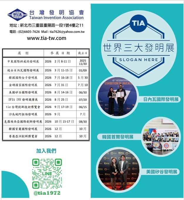 轉知台灣發明協會公告2026年度國際發明展盛會參展日期表,歡迎師生踴躍參加