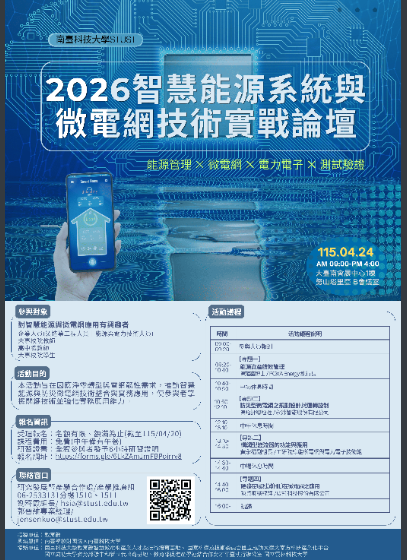南臺科技大學辦理「智慧能源系統與微電網技術實戰論壇」,鼓勵師生報名參加