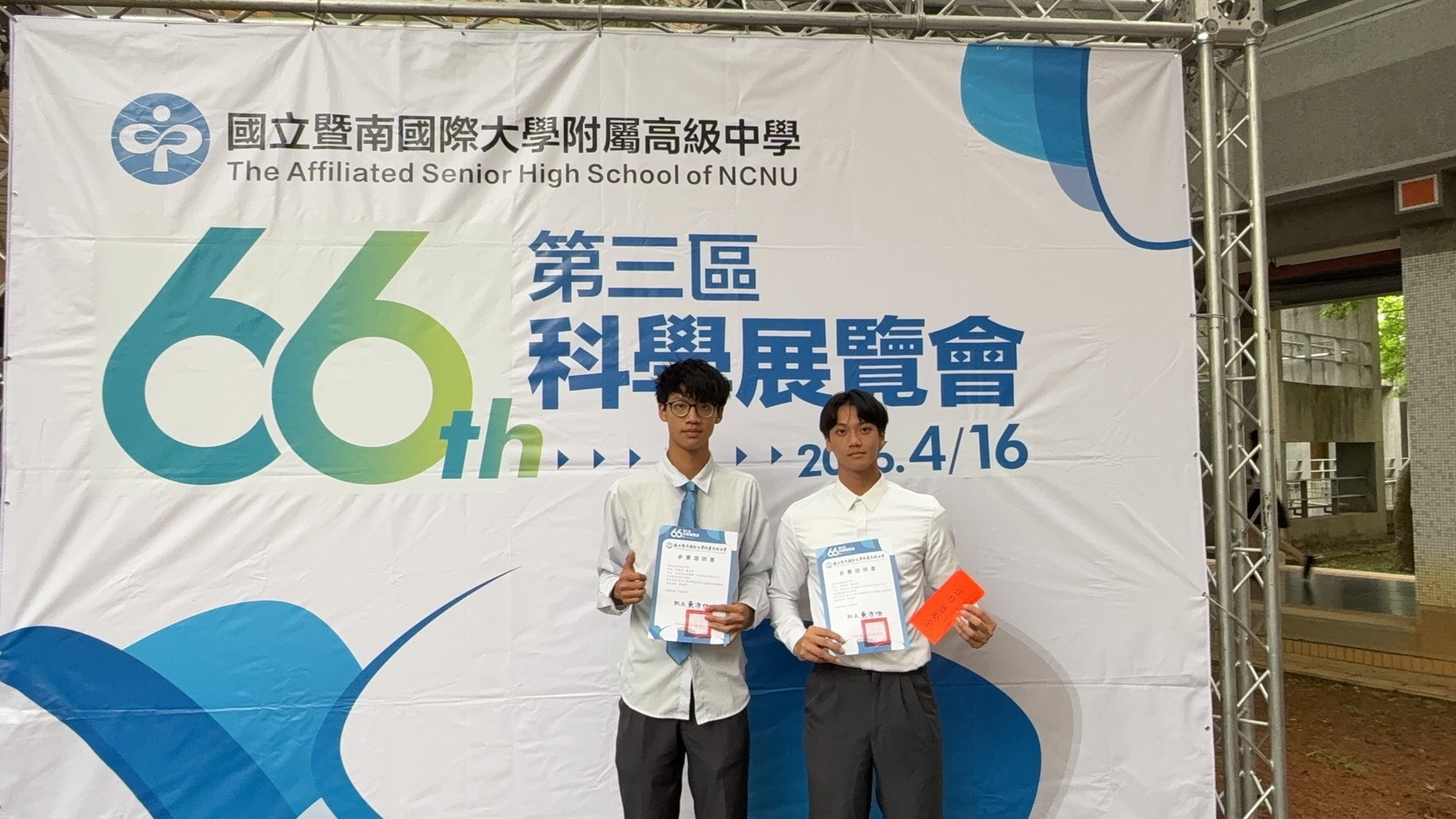 榮獲「第 66 屆第三區科學展覽會」行為與社會科學科『特優』獎項。