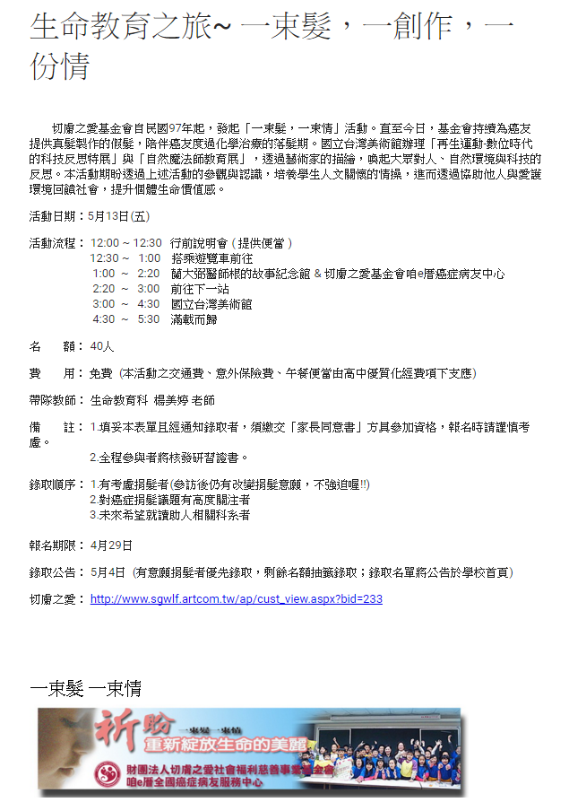 [高中優質化] 生命教育之旅 ~ 一束髮,一創作,一份情