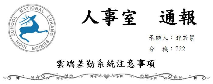 二、雲端差勤系統之使用者操作手冊已置於本校公用資料匣\_人事室及本公告