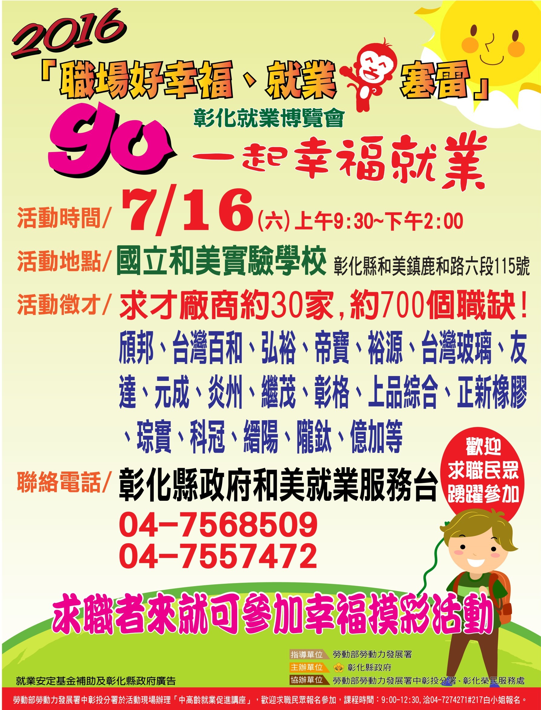 《徵才訊息》2016「職場好幸福、就業猴塞雷」第三場就業博覽會,歡迎同學及民眾踴躍參加!