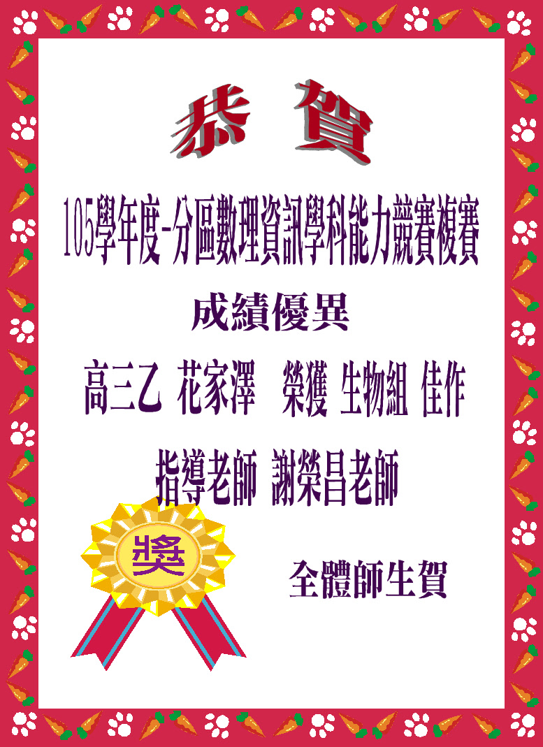 105學年度高級中學數理及資訊學科能力競賽-成績優異