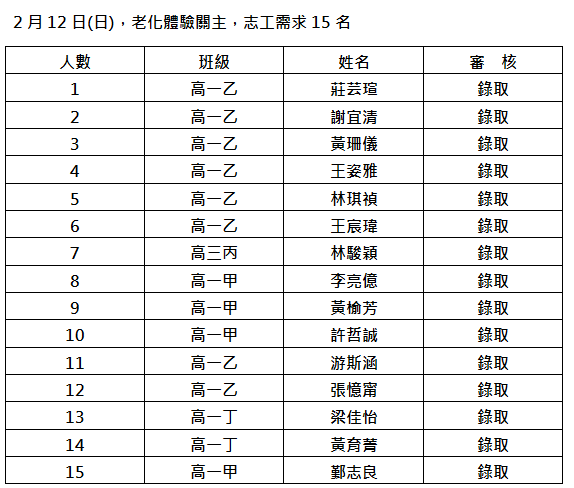 義賣攤位設有老化體驗關卡,每日需要15名志工擔任關主,協助活動的進行。
