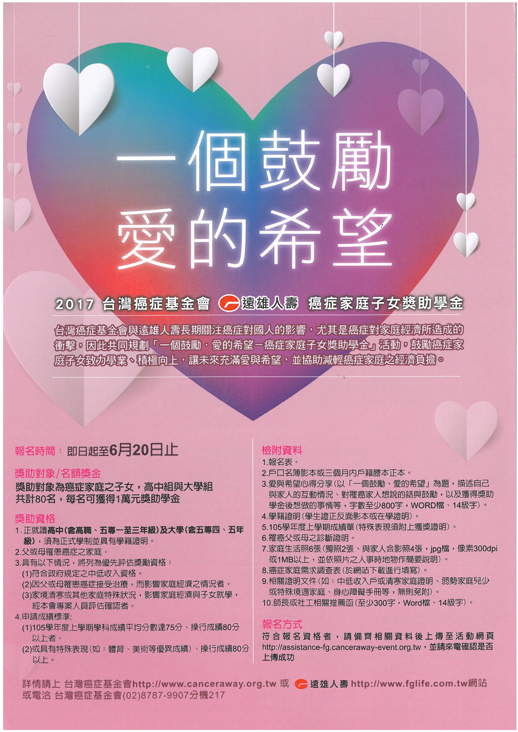 2017台灣癌症基金會 癌症家庭子女獎助學金