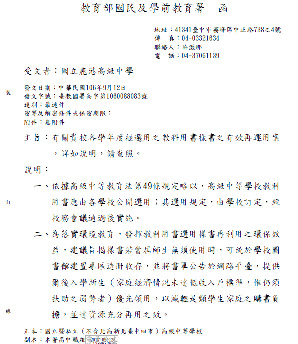 樣書回收再利用 ~請教師於9/19前將閒置樣書送至設備組回收再利用~